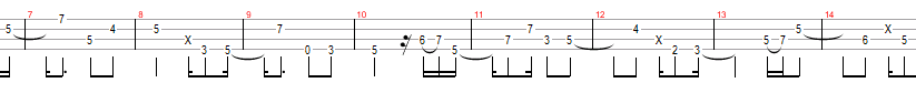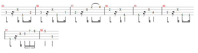 A levada do contrabaixo, para a parte “B”, foi criada pensando os intervalos dos acordes, e a técnica do Half-step, sem perder o ritmo do samba.