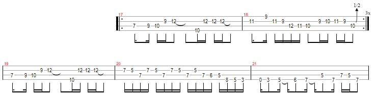 A parte B toco o Fragmento dos acordes num estilo rítmico que lembra o AC/DC. Na parte C volto a usar o acorde com a #4, com acentuações rítmicas bem ao estilo de John Paul Jones (Led Zeppelin).