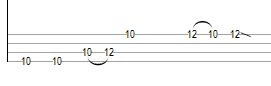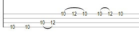 Antes de entrar o solo da guitarra ocorre uma pequena variação na levada inicial. Onde é executado dois hammer-ons seguidos na casa 10 para a casa 12. Observe a figura abaixo.
