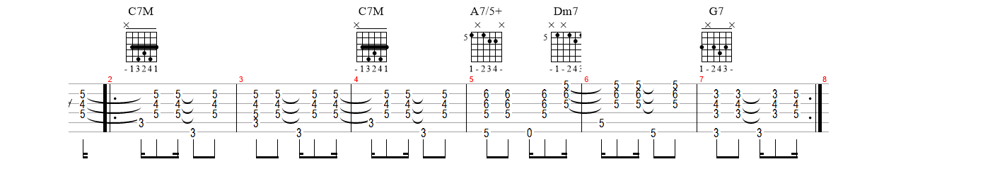 C7M | % | C7M | A7(#5) | Dm7 | G7 |