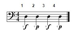 Quando tocamos uma música que está em 4/4, significa que esta música terá quatro tempos por compasso.Todo compasso possui tempos fortes e tempos fracos. No compasso 4/4 os tempos fortes são o 1 e o 3, e os tempos fracos são o 2 e o 4. Observe a figura abaixo: