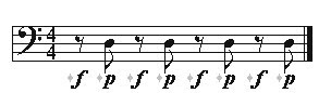 Tocar no contratempo significa acentuar o tempo fraco do compasso, como na figura abaixo: