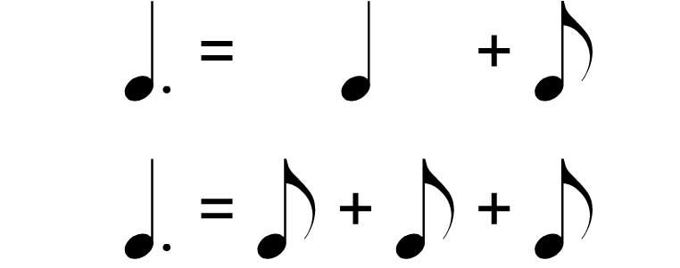 - Como você pode ver, uma semínima pontuada equivale a uma semínima mais uma colcheia.