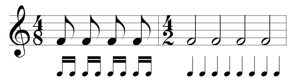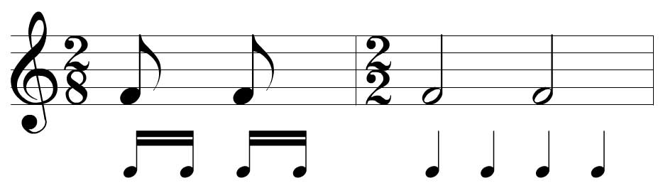- O 2/2 e o 2/8 também são compassos binários simples.