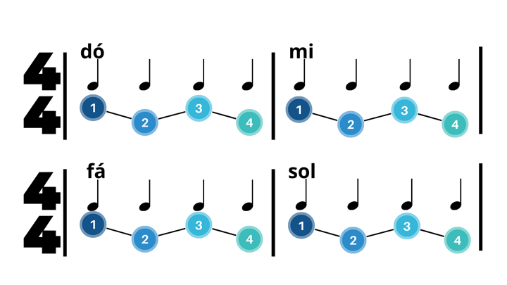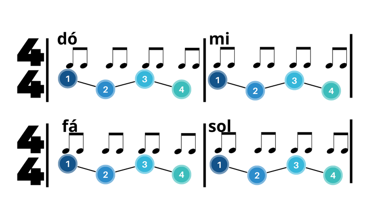 Em seguida, a semínima, que vale um tempo. Uma nota para cada tempo.