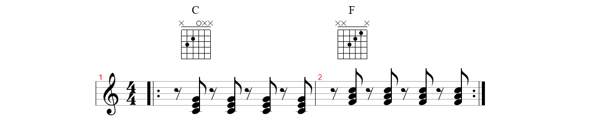 - Toque acordes nos tempos fracos de um compasso 4/4.